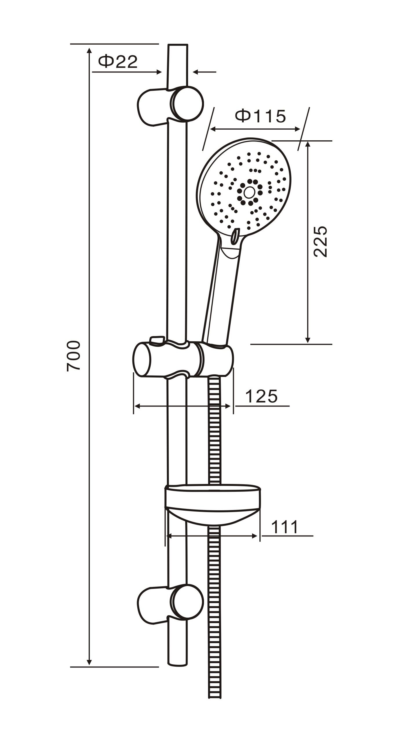 | Комплектация | ручной душ, штанга 700 мм, шланг 1500 мм, мыльница |